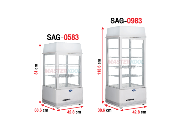 ตู้แช่เย็นกระจก 4 ด้าน มีให้เลือกใช้งาน 2 ขนาด (กว้าง x ลึก x สูง) :